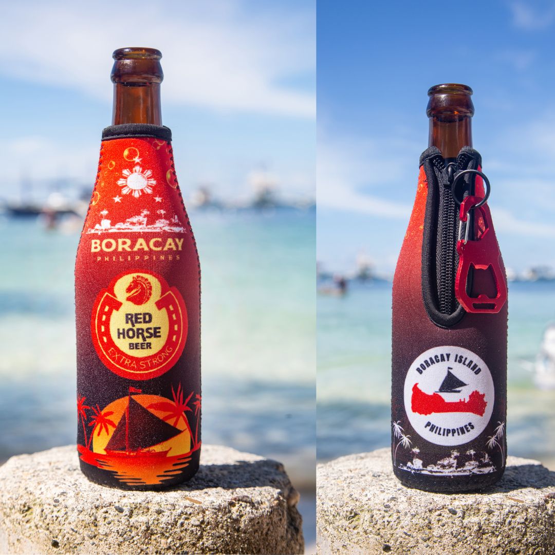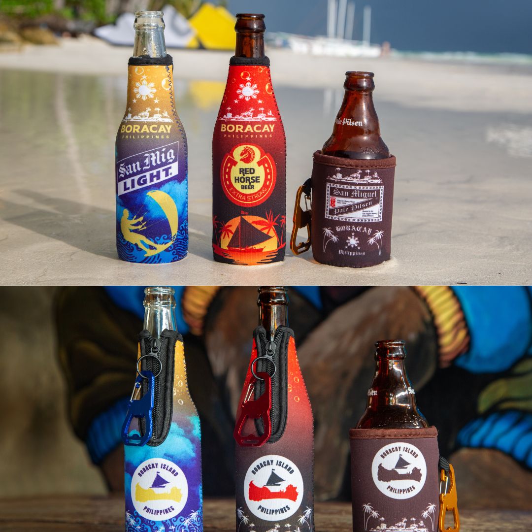 Elevate your island experience with our complete Boracay Beer Bottle Sleeve collection. Each sleeve is crafted from high-quality neoprene to keep your drinks ice cold and your hands dry and comfortable. Designed to fit most standard 330ml bottles such as San Miguel Light, Red Horse, and tall beers, plus San Miguel Pale Pilsen for stubbies and cans. ALL 3 KOOZIES COME WITH COLOR-MATCHING BOTTLE OPENER & CARABINER COMBO.